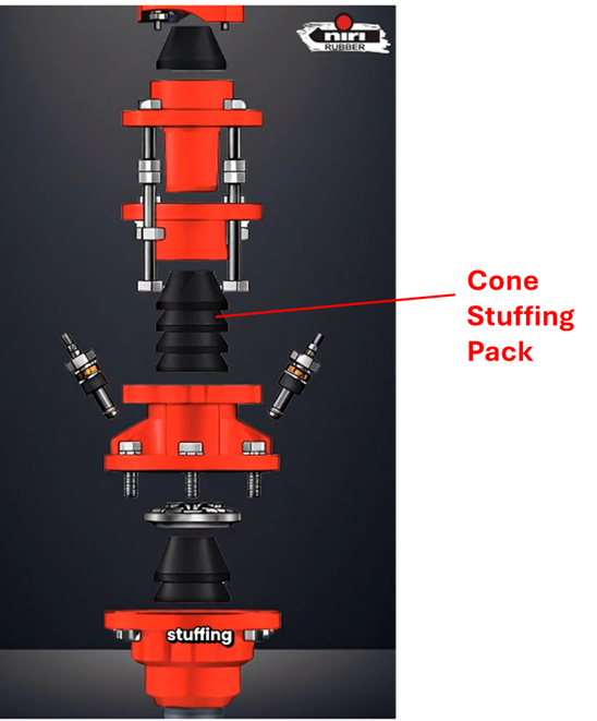 The Cone Stuffing Pack acts as a main seal that prevents oil, gas, or other fluids from leaking out of the stuffing box. It helps keep the system pressure stable and reduces the risk of leaks that can cause losses or safety issues. The elastomer material also lowers friction against the rod, reducing wear and helping the equipment last longer.